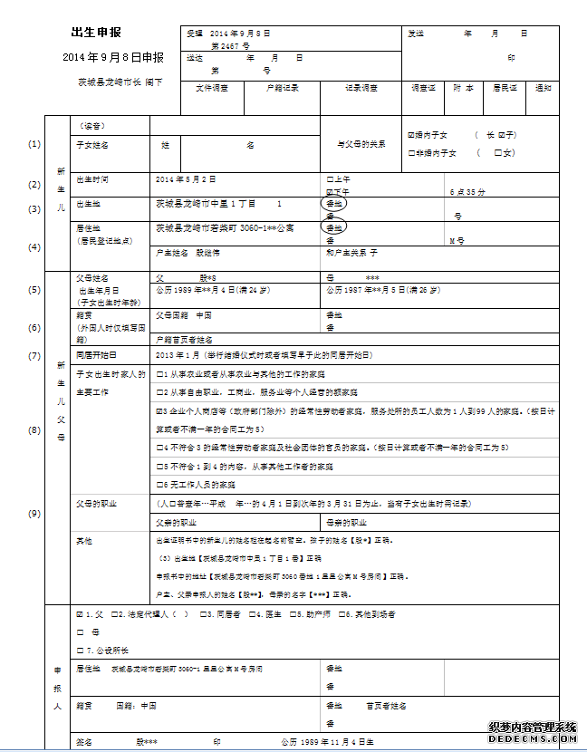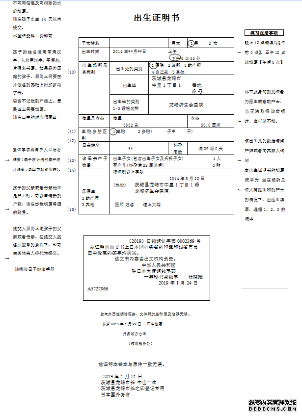 大連翻譯公司|日本出生證明/出生屆翻譯模板
